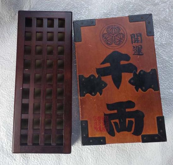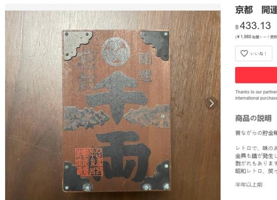 อีกใบเป็นกล่องเก็บเหรียญทองของญี่ปุ่นสมัยก่อน กระปุกออมสินโบราณแปลว่า"โชคดี" หรือ "เปิดรับโชคลาภ"
