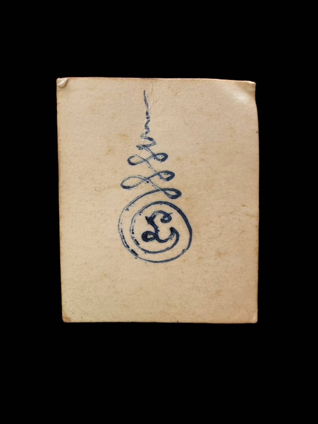 ด้านหลังมีเขียน ยันต์หมึกมือ ลายเส้นเก่าแท้ เส้นปากกาจางแบบภาพถ่ายยุคก่อน