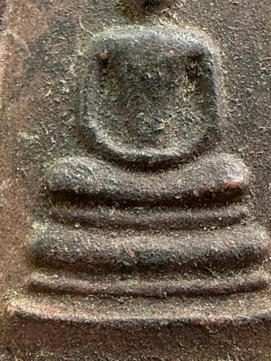 ด้านหน้าเป็นพิมพ์พระสมเด็จโตนั่งซุ้มครอบแก้ว ชั้นฐานเรียงสวย