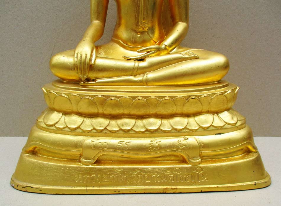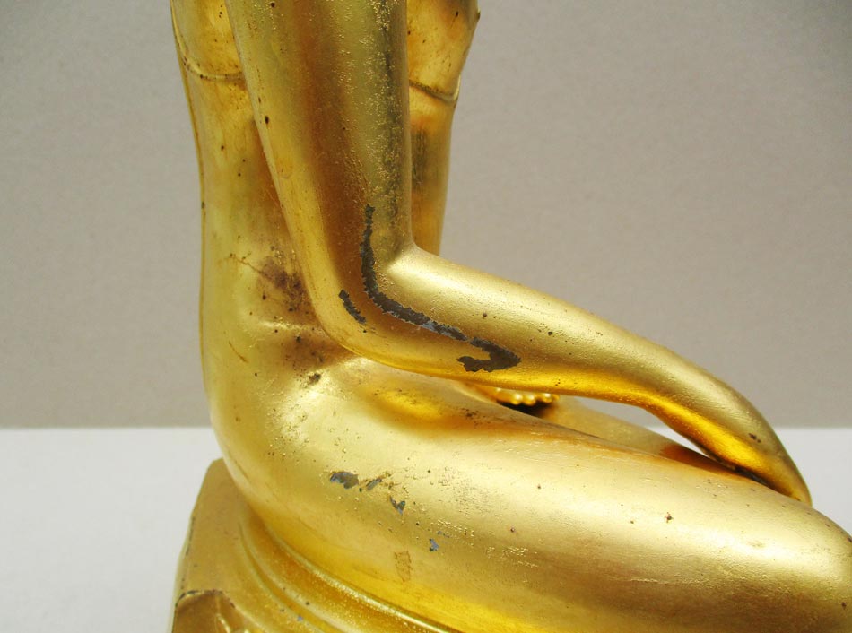 เนื้อโลหะปิดทองคำเปลวผิวแห้งหิ้ง มีส่วนผิวทองปิดบ้างนิดหน่อย