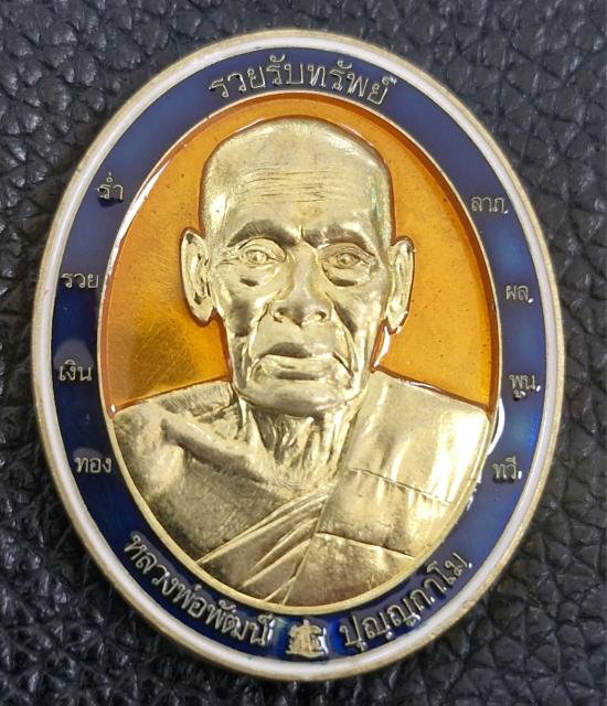 เคาะเดียวแดง เหรียญรวยรับทรัพย์ หลวงพ่อพัฒน์ วัดห้วยด้วน เนื้อทองเหลือง ลงยา 3 สี