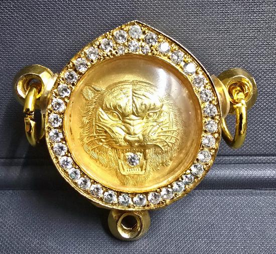 เหรียญกลมหน้าเสือ รุ่น"เจริญพร" หลวงปู่บุญมา โชติธัมโม วัดเขาแก้วทอง ปราจีนบุรี เนื้อนวะโลหะชุบทองคำ ฝังเพชรปาก ใส่ตลับอิตาลีชุบทองฝังเพชร 3 ห่วง หมายเลข ๕...พร้อมห้อยสวยๆครับ เคาะแรกแดง (ไม่มีกล่อง