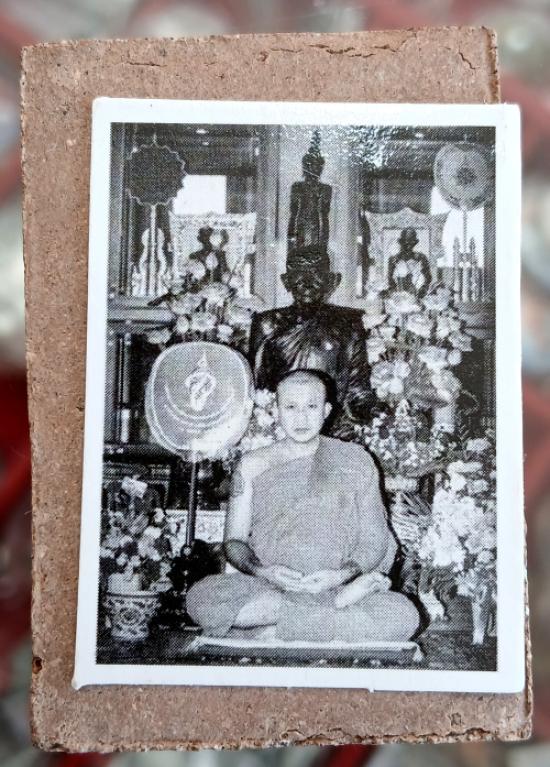 หลวงปู่ทวดพิมพ์กลักไม้ขีด หลังติดภาพถ่าย (ผสมผงเก่าที่ ลพ.เก็บไว้ + พระกรุที่แตกหัก + ผงว่านต่าง ๆ) งานเป่ายันต์พรหมสี่หน้าครั้งที่ 14 ปี 2557 หลวงพ่อชำนาญ วัดบางกุฎีทอง