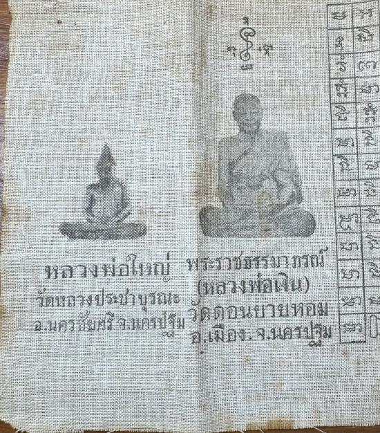 ผ้ายันต์ หลวงพ่อเงิน วัดดอนยายหอม หลวงพ่อใหญ่ จ.นครปฐม