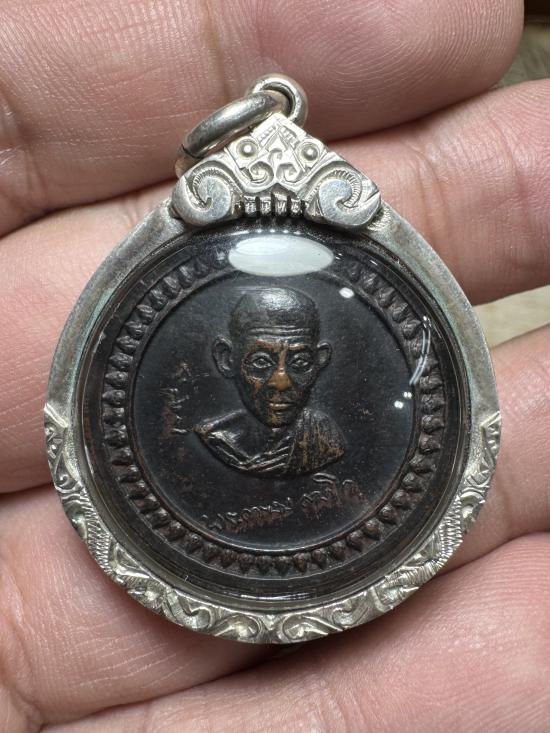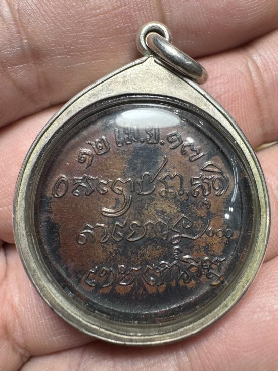 เหรียญ หลวงพ่อเกษม เขมโก รุ่น ศาลากลาง สุสานไตรลักษณ์ จ.ลำปาง ปี ๒๕๑๗ เนื้อทองแดงรมดำ + เลี่ยมเงิน เดิมๆ