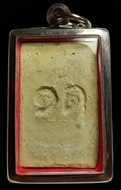 พระสมเด็จ ปี 2527 หลัง ๑ด แช่น้ำชา หลวงปู่ดู่ วัดสะแก อยุธยา รุ่นสร้างบรรจุโอ่ง กรอบสแตนเลสพร้อมห้อยบุชา
