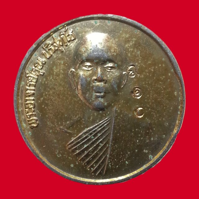 เหรียญกลมรุ่นแรกหลวงพ่อคูณ ปริสุทโธ รุ่นแรก (โยนสระ) หมายเลข 810 ปี 2512 พิพิธภัณฑ์ วัดบ้านไร่ จ.นครราชสีมา เนื้อกะไหล่ทอง ครับ