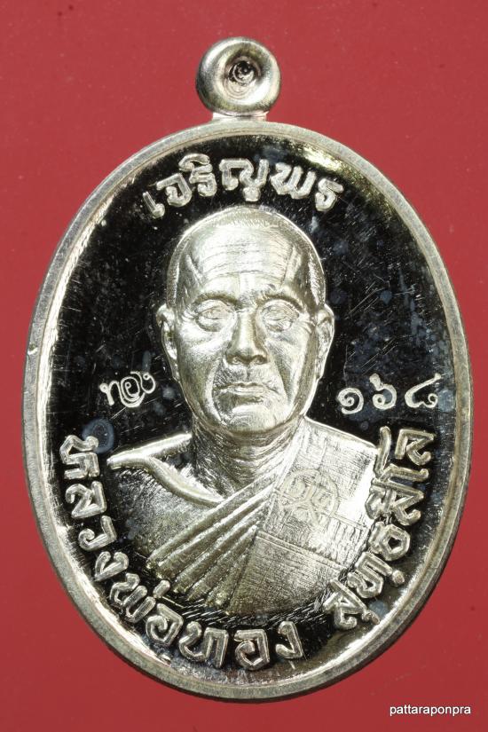 เหรียญหลวงพ่อทอง รุ่นเจริญพรบน ปี 2563 เนื้อเงิน หมายเลข 168 เลขสวยๆ
