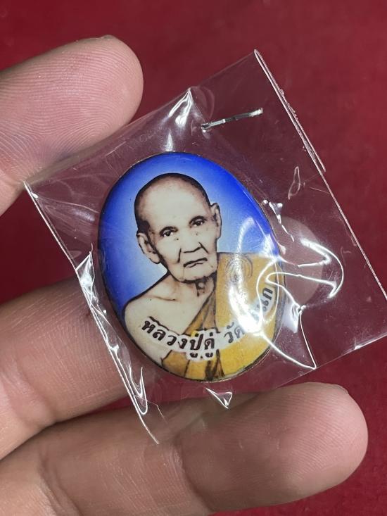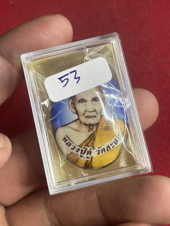 หลวงปู่ดู่ วัดสะแก ฉากฟ้า ซีเปีย พิมพ์รูปไข่ หลังยันต์ เนื้อทองแดง ปี 53 |