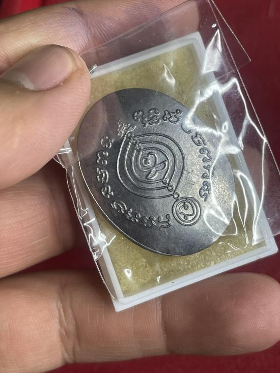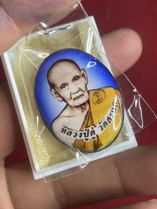 หลวงปู่ดู่ วัดสะแก ฉากฟ้า ซีเปีย พิมพ์รูปไข่ หลังยันต์ เนื้อตะกั่ว ปี 53 |