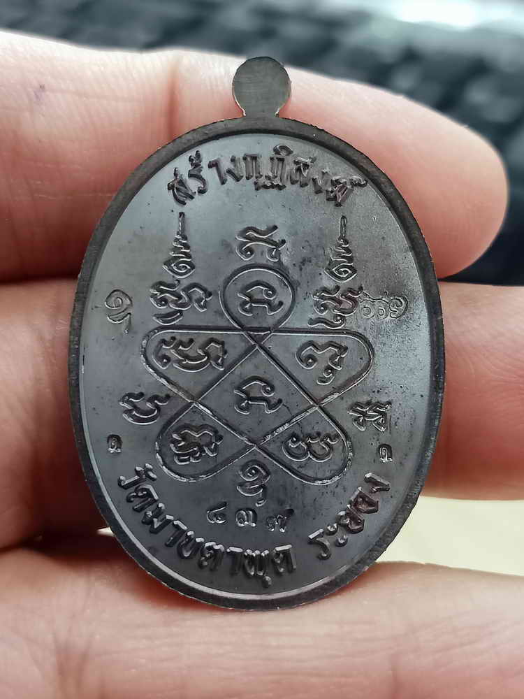 วัดใจ 100 เหรียญเจริญพร ขอบปล้องอ้อย หลวงพ่อรวย วัดมาบตะพุด จ.ระยอง 2566 ทองแดงรมดำ ลงยาจีวร หมายเลข 837 กล่องเดิม