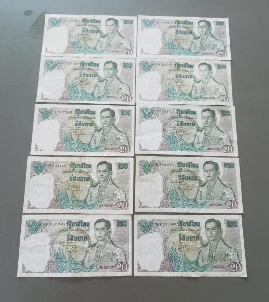 ธนบัตร 20 บาท พระที่นั่งเรืออนันตนาคราช แบบที่ 11 จำนวน 10 ฉบับ |