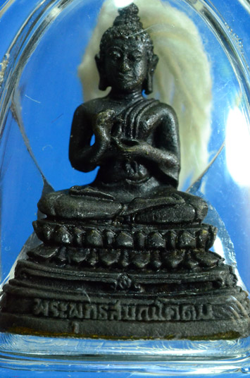 พระกริ่งสมเด็จพระพุทธสมณโคดม ปางยมกปาฏิหาริย์ หลวงปู่แว่น วัดถ้ำพระสบาย จ.ลำปาง กล่องเดิม ปี 2526 เลี่ยมอย่างดีครับ