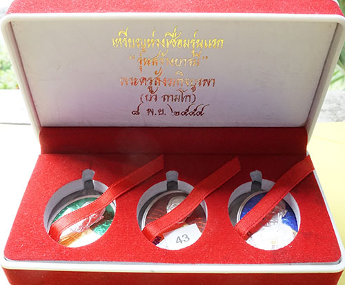 เหรียญห่วงเชื่อมชุดเงินลงยา กรรมการ หมายเลข 43 หลวงปู่บัว วัดศรีบุรพาราม กล่องเดิม