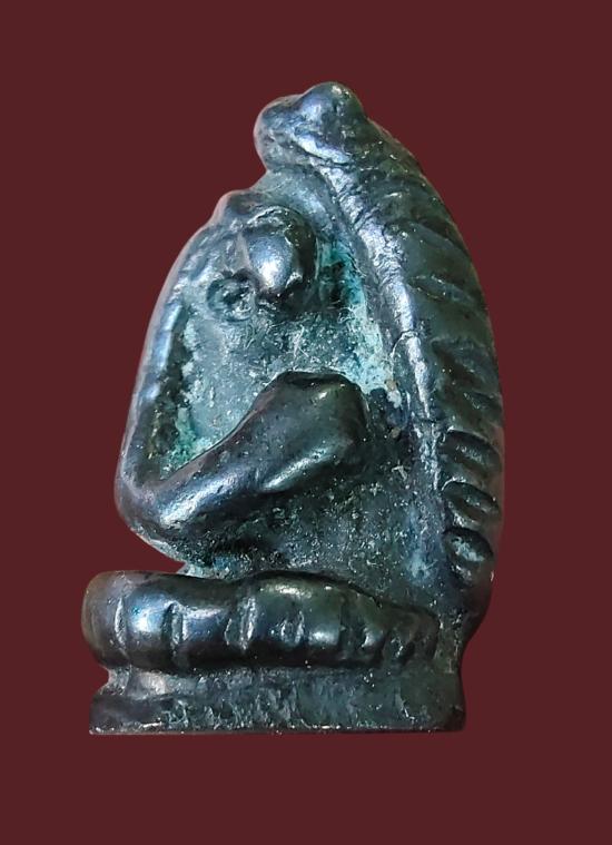 พระปิดตาพิมพ์พังพระกาฬเนื้อสัมฤทธิ์เก่า ใต้ฐานมีจารสวยครับ |