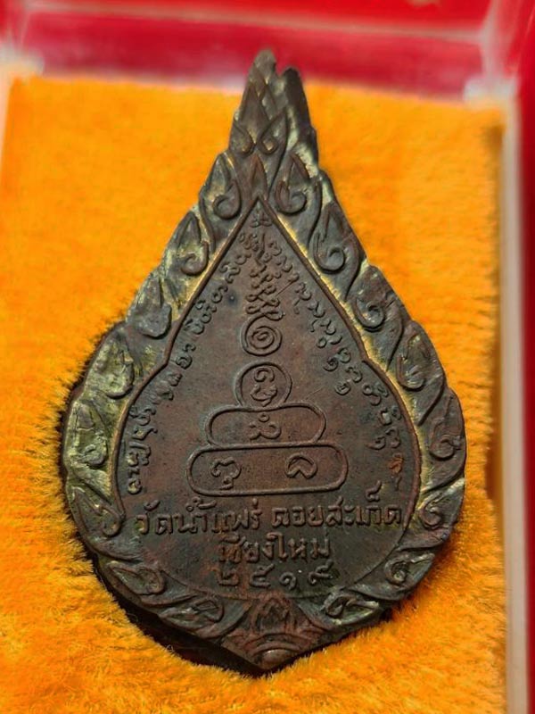 เหรียญพัดยศ(กรรมการ) พระอาจารย์สิงห์โต วัดน้ำแพร่ อ.ดอยสะเก็ด จ.เชียงใหม่ ปี 2519 กล่องเดิม เป็นเหรียญประกบหน้า-หลัง มีจารด้านหลังทั้งแผ่นหน้า และแผ่นหลัง พบเจอน้อย