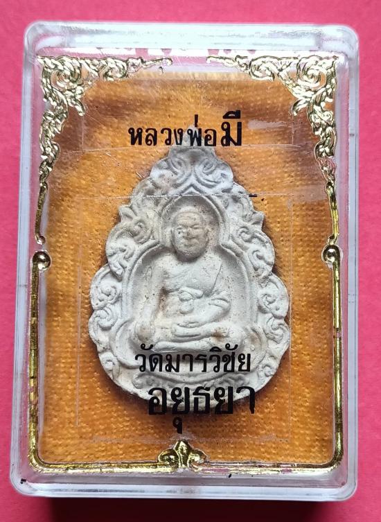 ลพ.มี วัดมารวิชัย อยุธยา รูปเหมือนเนื้อผงลายไทย รุ่นลาภผลพูนทวี ปี๓๖ ฝังตะกรุด