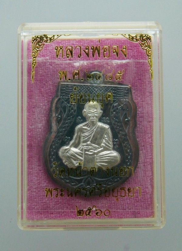 เหรียญย้อนยุค 2485 หลวงพ่อจง วัดหน้าต่างนอก เนื้อทองแดงรมดำหน้ากากเงิน เลข 294 หลวงพ่อแม้นปลุกเสก