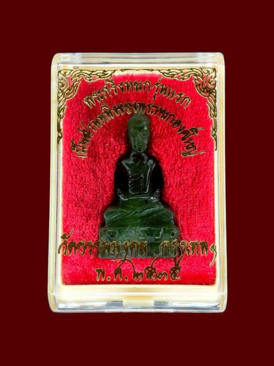 รายละเอียด พระกริ่งหยกวัดธรรมมงคลแกะจากหยกแคนาดาเนื้อเขียวสวยๆพร้อมกล่องเดิมๆหายากครับ