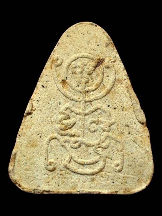 พระปิดตา พิมพ์สามเหลี่ยม หลังยันต์นะโม พุทธายะ เนื้อผง หลวงพ่อกวย วัดโฆสิตาราม (วัดบ้านแค) จ.ชัยนาท ปี 2515 |