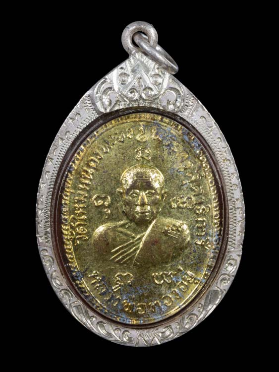 เหรียญหลวงพ่อทองอยู่ วัดใหม่หนองพะอง รุ่นเก้าหน้า เนื้อทองเหลือง ปี 2526 จ.สมุทรสาคร พร้อมบัตรการันตรีพระ