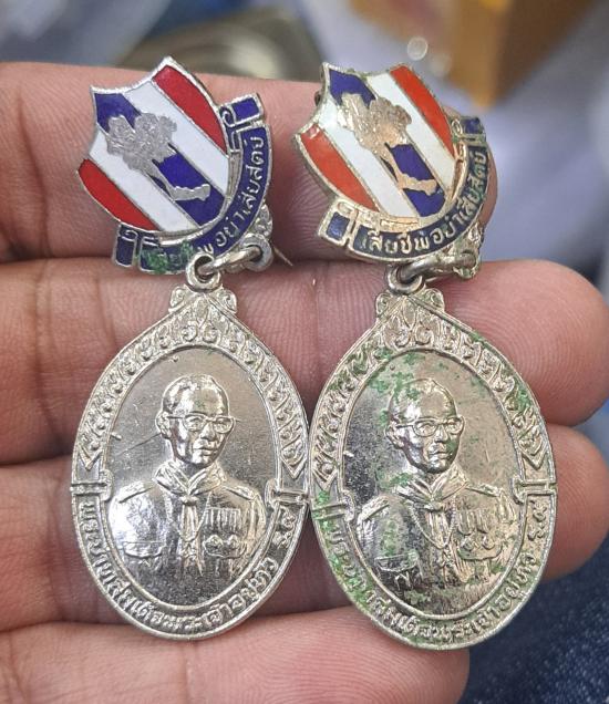 เหรียญ ภปร.พร้อมเข็มกลัดติดหน้าอก พระบาทสมเด็จพระเจ้าอยู่หัว ร.9 องค์อุปถัมภ์ลูกเสือชาวบ้าน " เสียชีพอย่าเสียสัตย์ " "อยู่ครบชุดครับ" สภาพตามรูปครับ 2 เหรียญครับ |