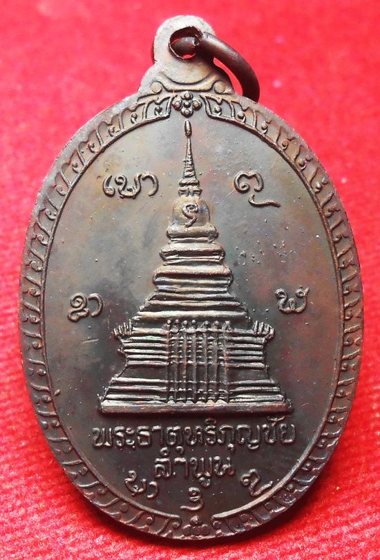 เหรียญครูบาศรีวิชัย นักบุญแห่งล้านนาไทย หลังพระธาตุหริภุญชัย จ.ลําพูน เนื้อทองแดงรมดำ