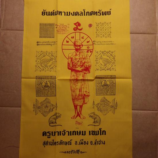 ผืนใหญ่......(ขนาด 22 X 33 นิ้ว) ผ้ายันต์มหามงคลโภคทรัพย์ หลวงพ่อเกษม เลข 1242 ..68.11.26 |