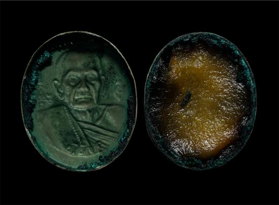ภายในบรรจุสีผึ้งเสาร์ห้ามหาเศรษฐี ที่หลวงปู่หมุนหุงและเสกเมื่องานเสาร์ห้า 2543 ที่วัดป่าหนองหล่ม จ.สระแก้ว