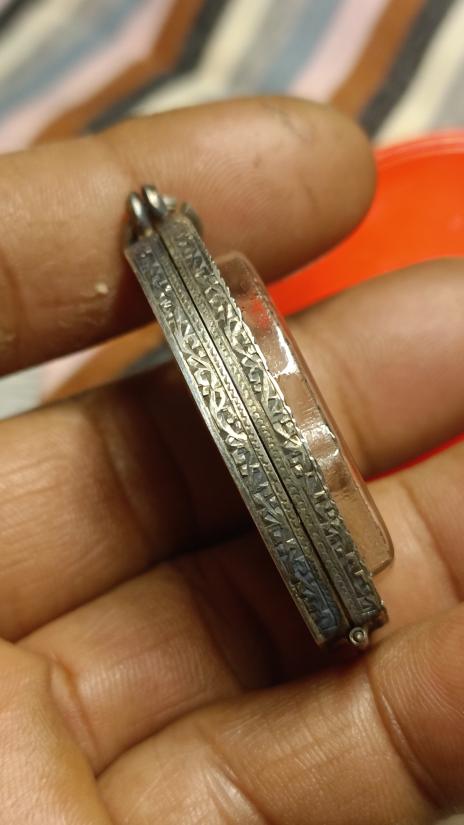 ตลับเงินแกะลายปิดหลังแถมพระเหรียญหลวงพ่อจวน วัดหนองสุ่ม