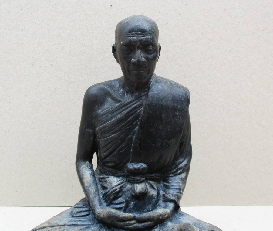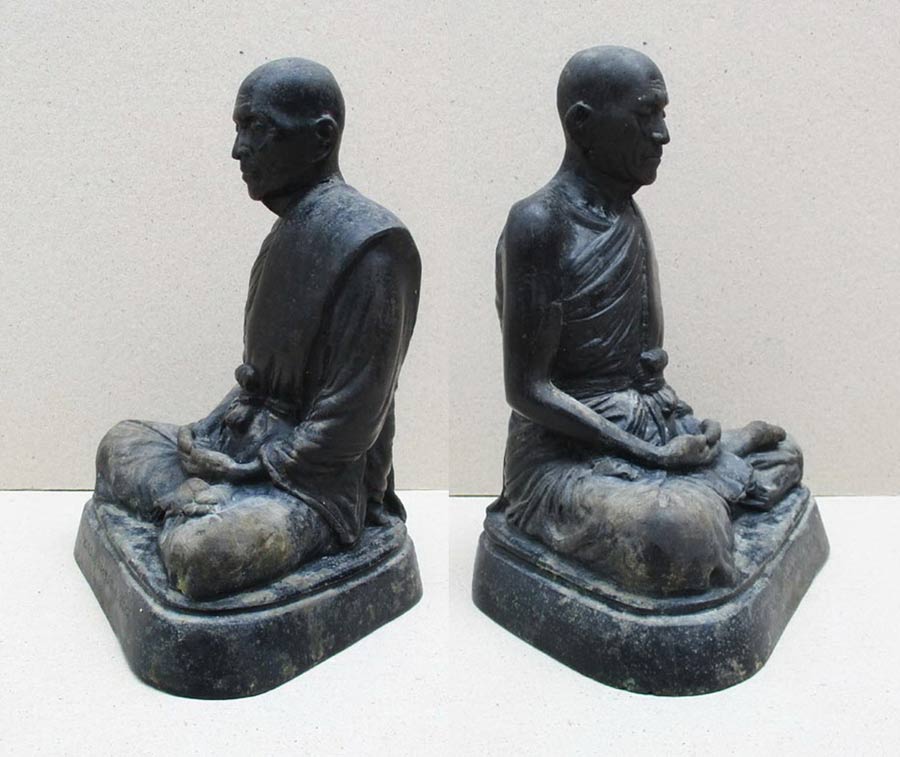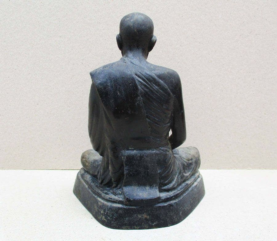 พระบูชาหลวงปู่จันทร์ดี เกสาโร วัดหินป่าเกิ้ง จ.ขอนแก่น รุ่นแรก พ.ศ.2517 หน้าตัก 5 นิ้ว เนื้อโลหะรมดำมันปู ผิวแห้งหิ้ง !!