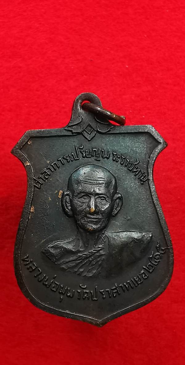 เหรียญหน้าบันเนื้อทองแดงรมดำ หลวงพ่อมุม วัดปราสาทเยอร์ ปี2515 บล็อค 9 กา |