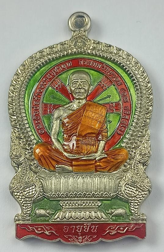 เหรียญนั่งพานอายุยืน (หลังหนุมาน รุ่นแรก) หลวงพ่อคูณ วัดบ้านไร่ เนื้ออาปาก้าลงยา3สี(แยกชุดพระบูชานวะหน้าตัก18นิ้ว) เบอร์ 328 พร้อมกล่องครับ