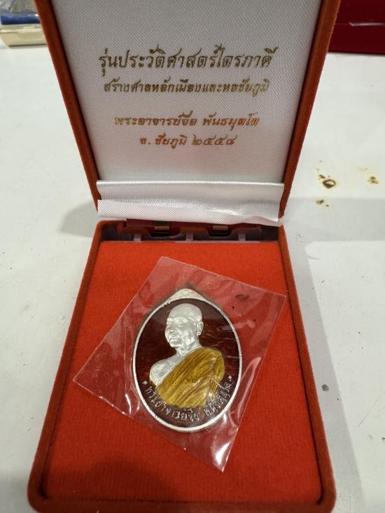 หลวงปู่จื่อ วัดเขาตาเงาะฯ รุ่นประวัติศาสตร์ไตรภาคี ปี2558 เนื้อเงิน ลงยาสีแดง no.39 มีกล่อง