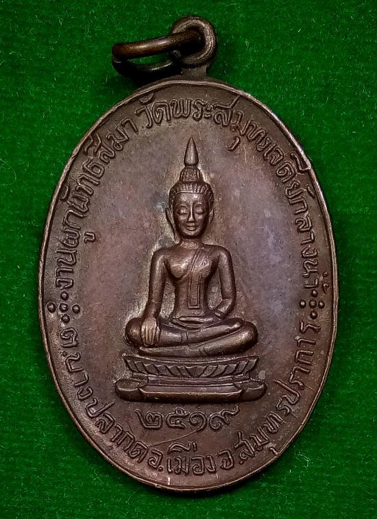 เหรียญพระพุทธ หลังช้าง วัดพระสมุทรเจดีย์กลางน้ำ ปี 2519 หลวงปู่โต๊ะ วัดประดู่ฉิมพลี ปลุกเสก |