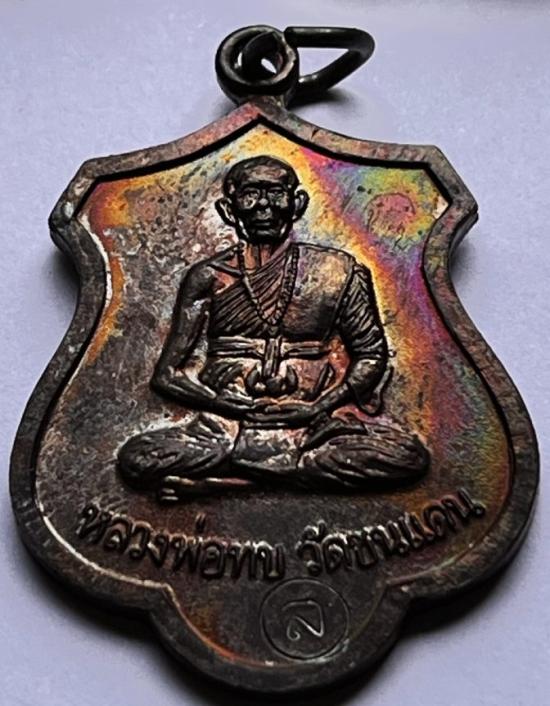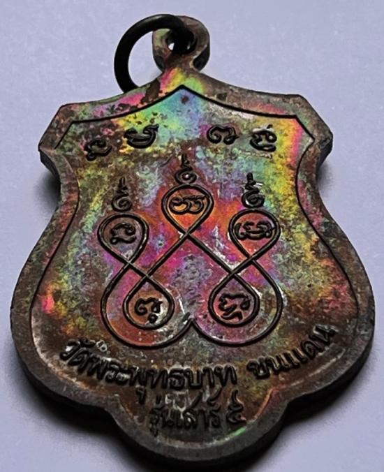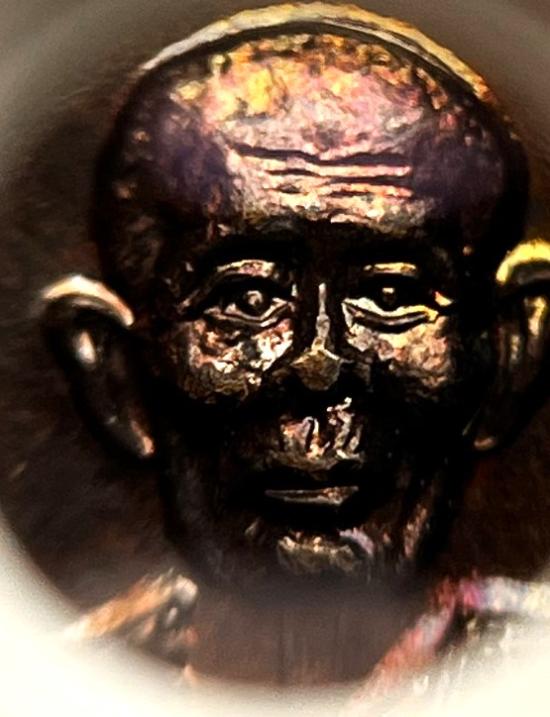 ****************ภาพมุมเอียงองค์เดียวกับภาพบนให้เห็นผิวเหรียญ ผิวมีรุ้งและรอยดำ