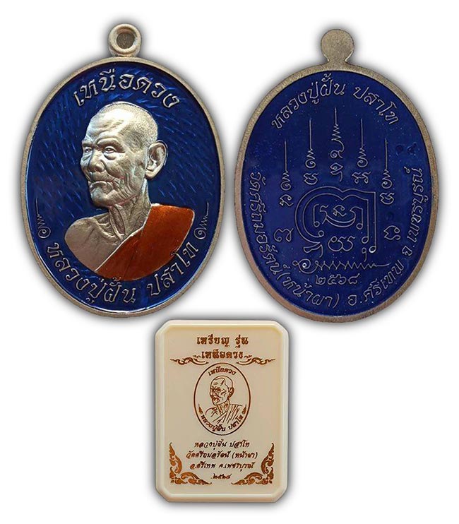 เหรียญเหนือดวง เนื้ออัลปาก้า ลงยาฟ้าหน้าหลัง ลงยาจีวร หลวงปู่ฝั้น วัดศรีถมอรัตน์(หน้าผา) เพชรบูรณ์