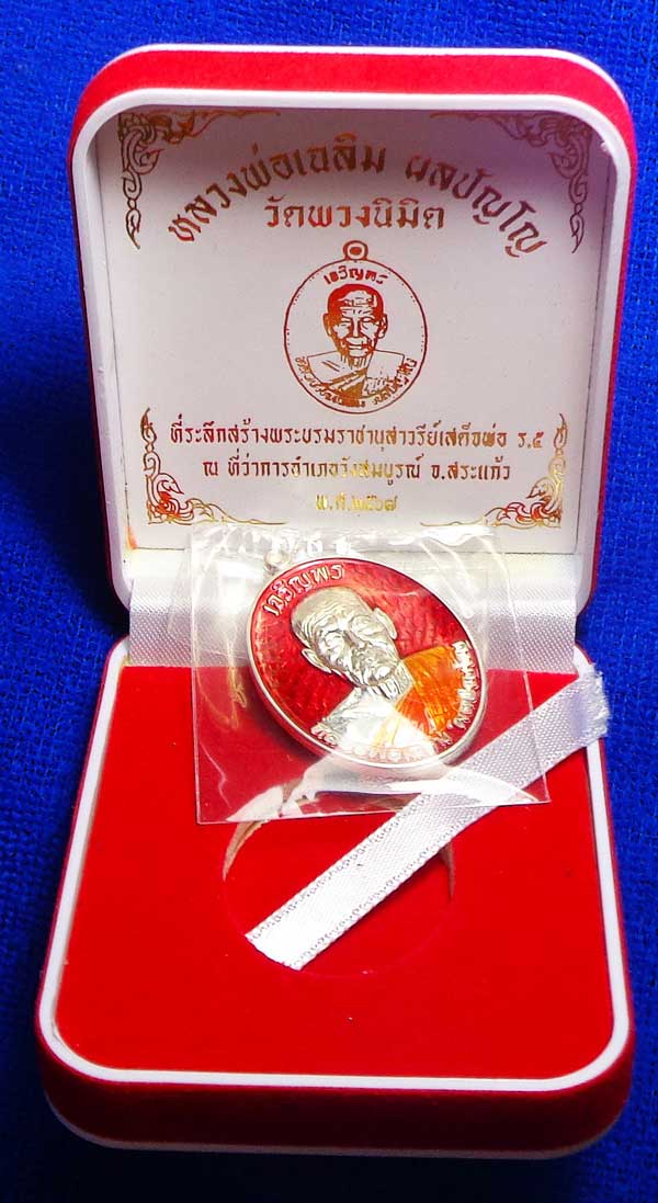 เหรียญหลวงพ่อเฉลิม ผลปัญโญ วัดพวงนิมิต ที่ระลึกสร้างพระบรมราชานุสาวรีย์เสด็จพ่อ ร.5 ณ ที่ว่าการอำเภอวังสมบูรณ์ ปี 2567 เนื้อเงินลงยาแดง หมายเลข 74 กล่องเดิมๆ จ.สระแก้ว