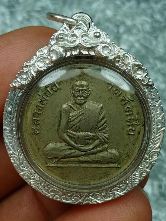 เหรียญกลมเนื้ออัลปาก้า ปี2508 หลวงพ่ออี๋ วัดสัตหีบ จ.ชลบุรี สภาพสวยสมบูรณ์ ผิวเดิมๆ พร้อมเลี่ยมเงินงานมืออย่างดี
