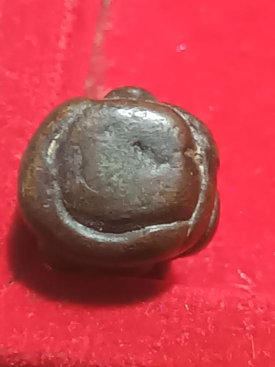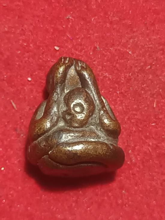 พระปิดตาหล่อโบราณ เนื้อทองผสม คาบเบ้า ไม่ทราบที่