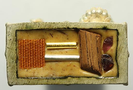 รูปหล่อลอยองค์พระพรหมสี่หน้า วัดห้วยเงาะ รุ่นแรก ใต้ฐานบรรจุด้วยมวลสารเก่า เป็นผงว่านมงคลเก่าเก็บ ตั้งแต่สมัยอดีตเจ้าอาวาสองค์ก่อนนำมาใส่ไว้ในโอ่งตั้งอยู่ในโบสถ์วัดห้วยเงาะ ผ่านพิธีพุทธาภิเษกมาแล้วมากมายจนนับไม่ถ้วน เส้นเกศา จีวร ตะกรุดเงินและทองคำ พลอยทับทิม ไม้ตะเคียนลอดโบสถ์อายุร้อยกว่าปีของวัดม่วงหมังผ่านพิธีพุทธาภิเษกมานับไม่ถ้วนเช่นกัน