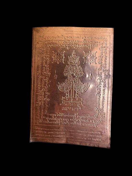 P21 แผ่นท้าวเวสสุวรรณ เนื้อทองแดง ลงยันต์เต็มแผ่น (ไม่ทราบที่สร้าง) (เคาะเดียวแดง)