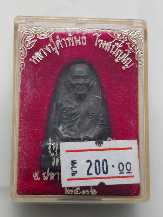 รูปหล่อเหมือนพิมพ์หลังเตารีด หลวงปู่คําพันธ์ รุ่นบุญญาบารมี ปี พ.ศ 2536 เนื้อนวะโลหะ เลข 152 กล่องเดิม สภาพสวยเดิม