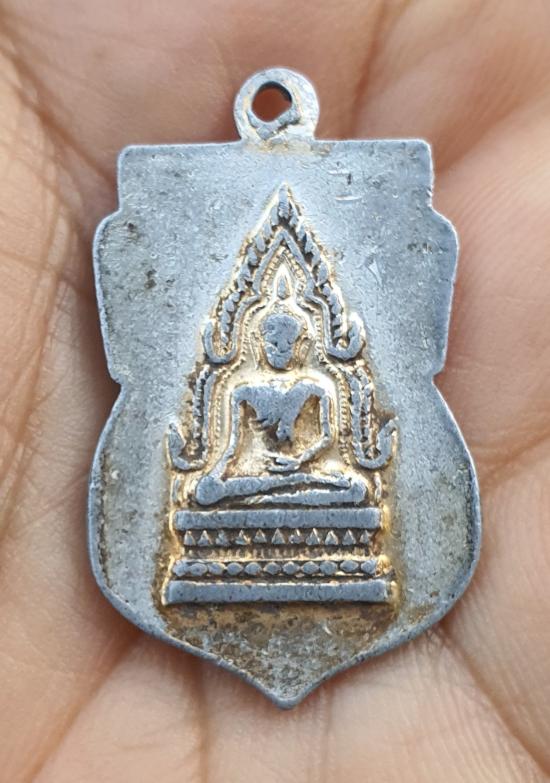 วัดใจเหรียญเสมาหลวงปู่ทวด หลังพระพุทธชินราช เนื้ออลูมิเนียมกะไหล่ทอง ออกวัดใหญ่ พิษณุโลก ปี2509