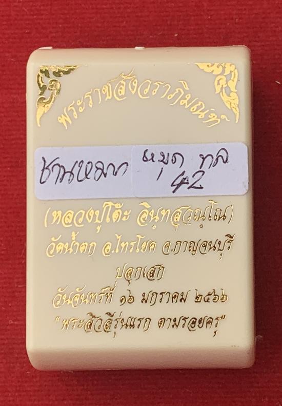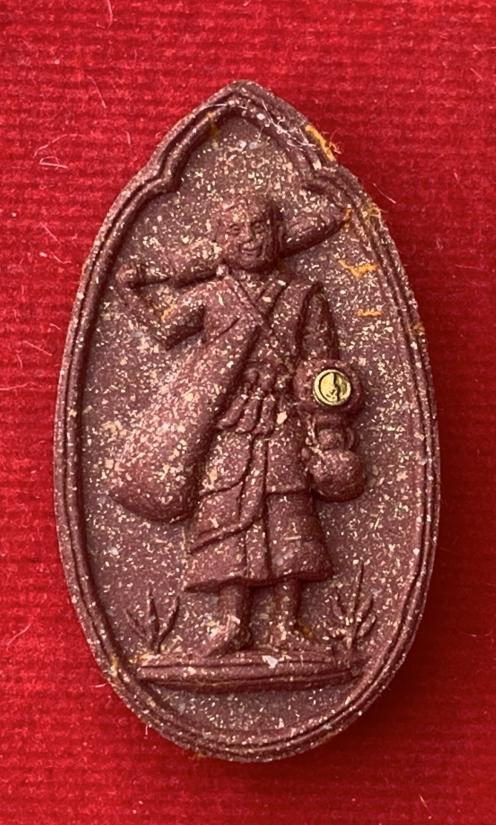 พระสิวลีตามรอยครู รุ่นแรก หลวงพ่อแอ่ม วัดน้ำตก จ.กาญจนบุรี เนื้อชานหมากหมุดทองเหลือง หมายเลข 42