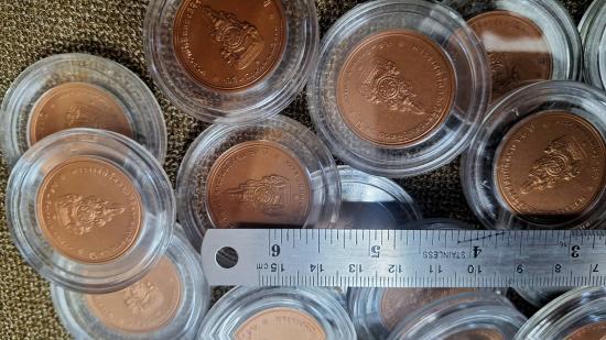 เคาะเดียวแดงเหมาๆ 30 เหรียญ เหรียญทองแดงพ่นทราย ที่ระลึก 60 ปี ครองราชย์รัชกาลที่ 9 สภาพสวยไม่ผ่านใช้ พร้อมตลับเดิมๆ สวยมากๆ