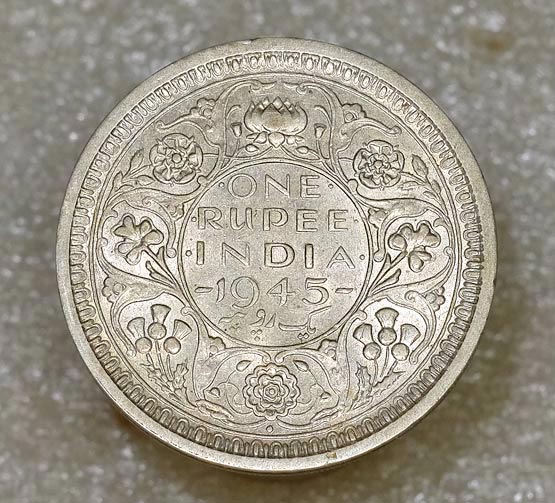เหรียญกษาปณ์อาณานิคมบริติชอินเดีย กษัตริย์ GEORGE VI - ONE RUPEE ค.ศ.1945(b) เนื้อเงิน UNC