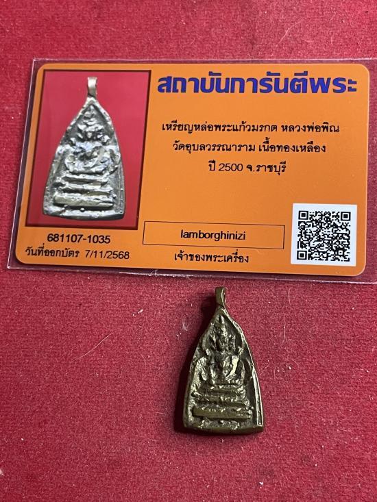 หลวงพ่อพิณ วัดอุบลวรรณาราม ปี 2500 เหรียญหล่อพระแก้วมรกต พร้อมบัตร