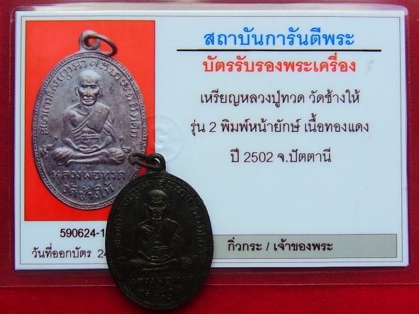 เหรียญหลวงปู่ทวด วัดช้างให้ รุ่น2 พิมพ์หน้ายักษ์ เนื้อทองแดง ปี 2502+บัตรรับรอง 55169455