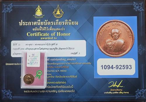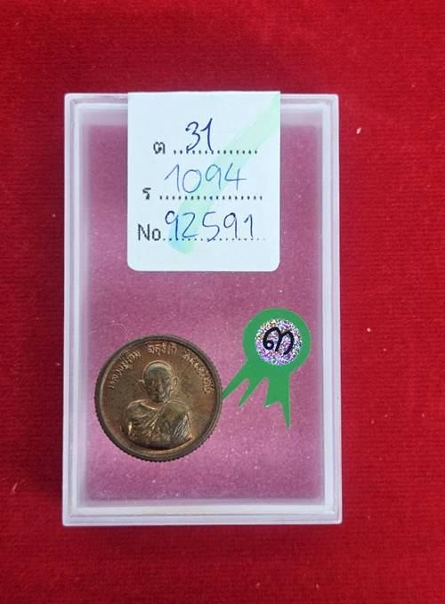เหรียญขอบสตางค์ รุ่นโสฬส มงคล หลวงปู่ทิม วัดละหารไร่ เนื้อทองแดง ปี2533 ติดรางวัลที่3